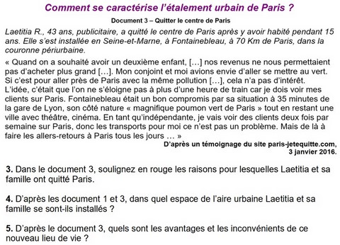 3. Dans le document 3, soulignez en rouge les raisons pour lesquelles Laetitia et sa famille ont quitté Paris.